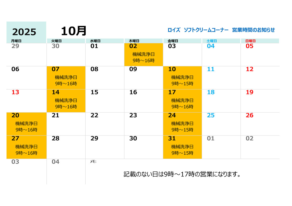 営業時間 9:00~17:00 (月・木曜日は、機械洗浄の為16:00営業終了)